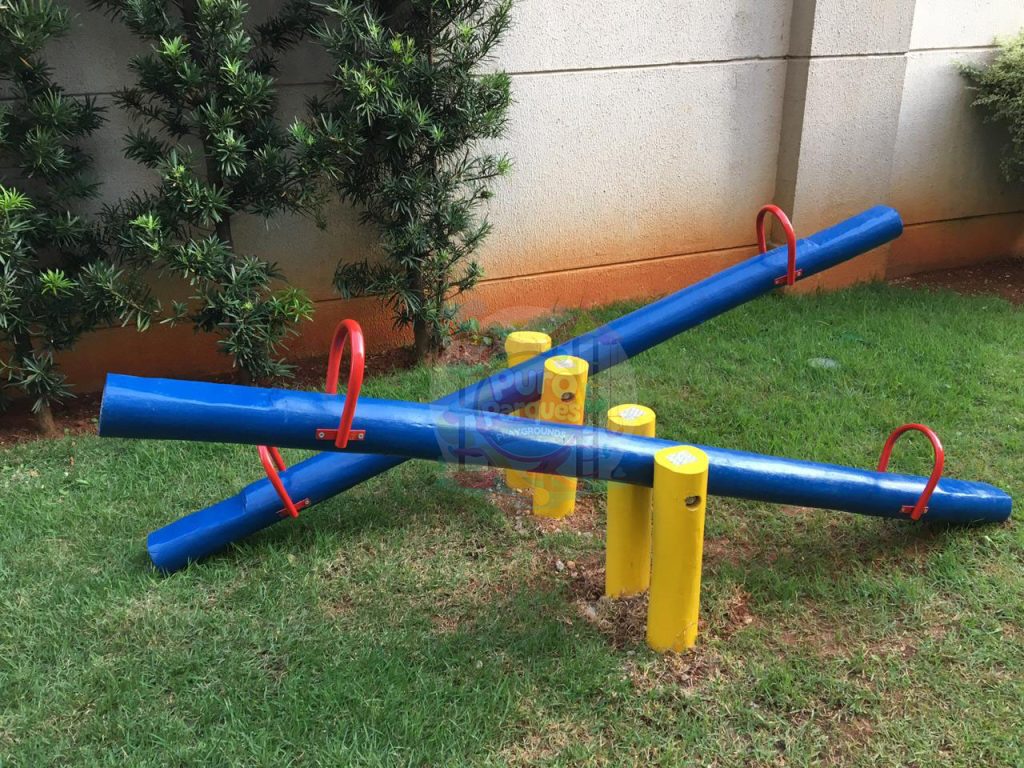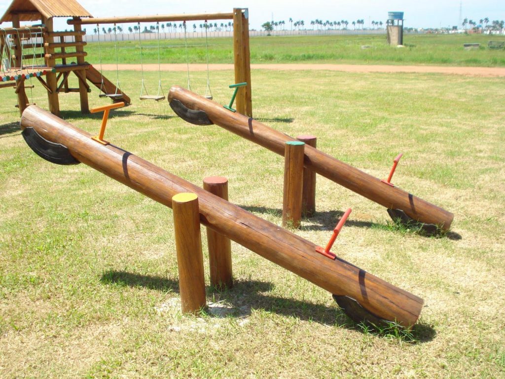 Gangorra dupla em tronco de eucalipto tratado em autoclave, oferecendo resistência, durabilidade e visual rústico. Ideal para áreas externas, como parquinhos e espaços de lazer.