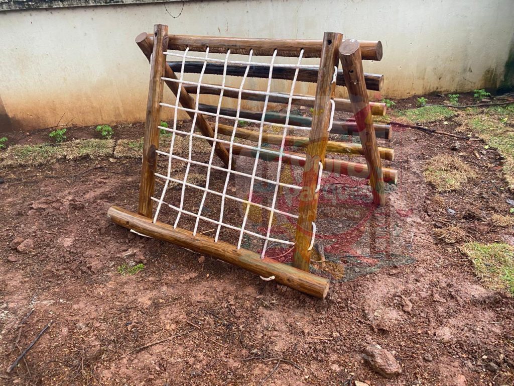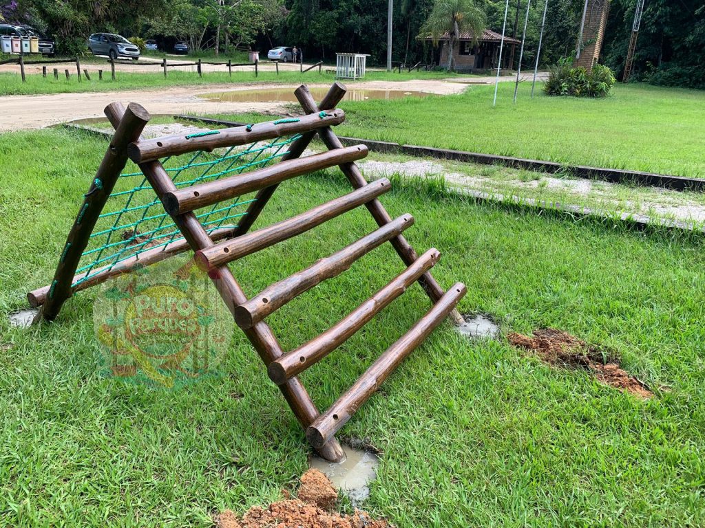 Estrutura fabricada em madeira de eucalipto tratado em autoclave, ideal para uso em playgrounds, escolas, áreas de lazer e espaços ao ar livre. O cestão conta com sustentação em toras de eucalipto e rampa inclinada confeccionado com corda reforçada, proporcionando conforto e mobilidade durante a brincadeira.
