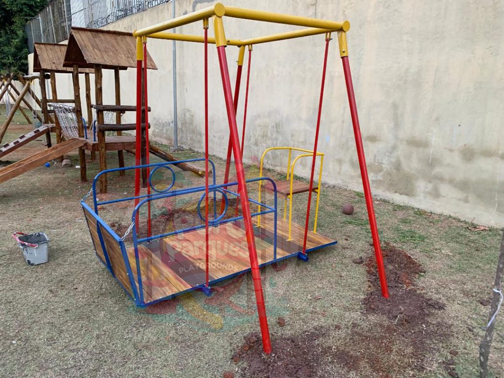 Balanços em tronco de eucalipto tratado em autoclave ou em aço com pintura eletrostática, garantindo resistência e estabilidade. Estrutura robusta, ideal para áreas externas como playgrounds, praças e espaços de lazer.