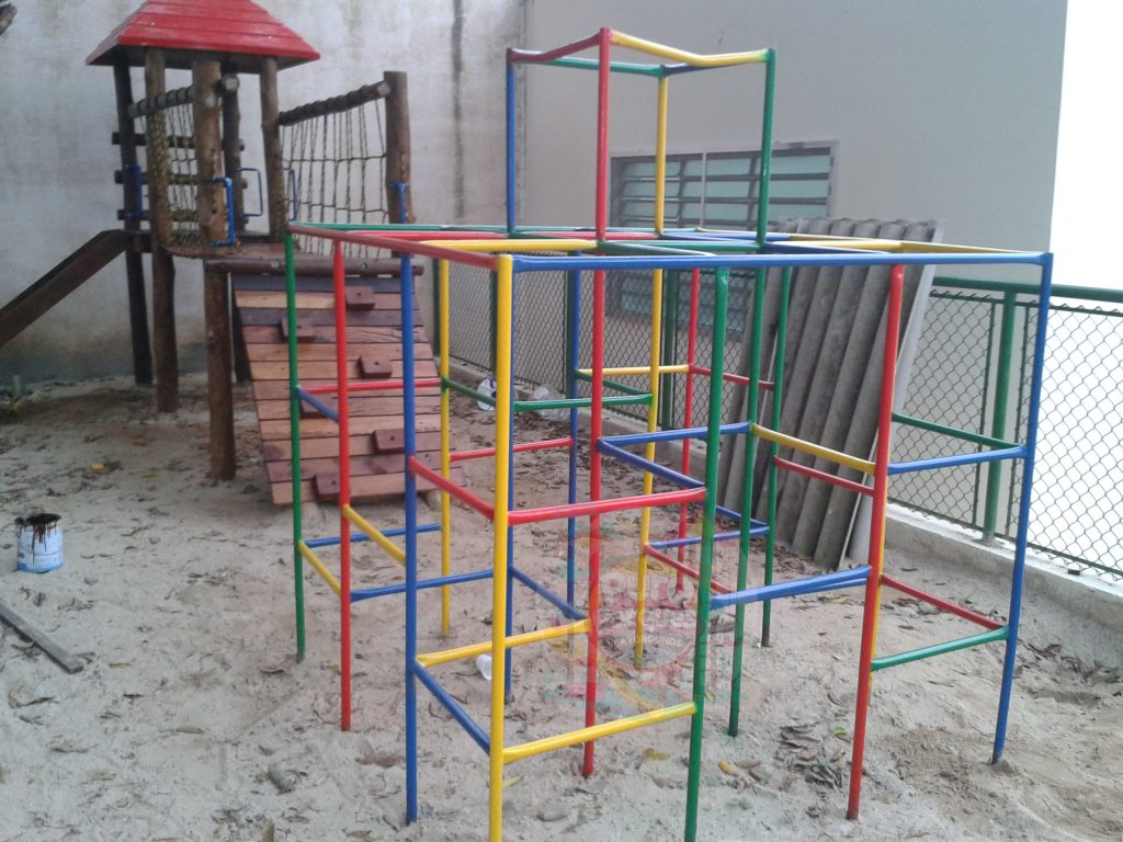 Gaiola de tronco em tubos de aço carbono com pintura eletrostática, garantindo alta durabilidade, resistência e acabamento de qualidade. Ideal para atividades físicas e recreativas em áreas externas.
