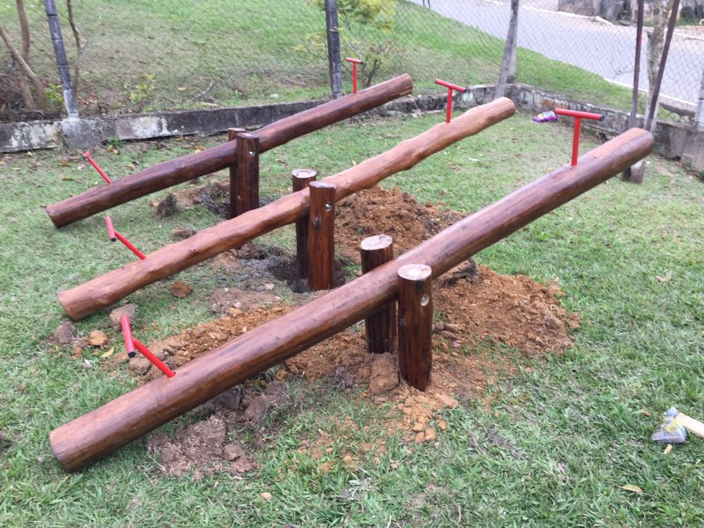 Gangorra tripla em tronco de eucalipto tratado em autoclave, oferecendo resistência, durabilidade e visual rústico. Ideal para áreas externas, como parquinhos e espaços de lazer.